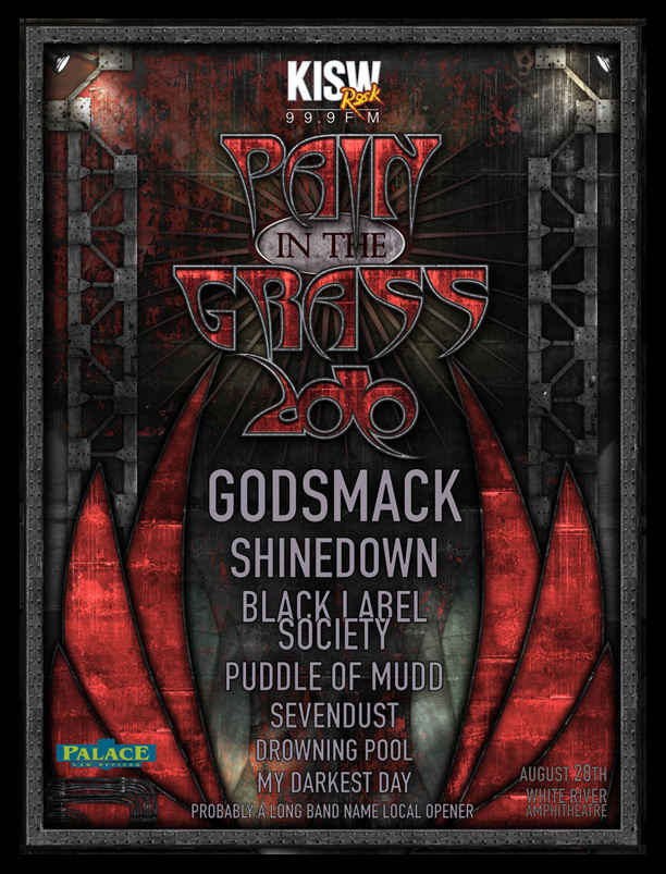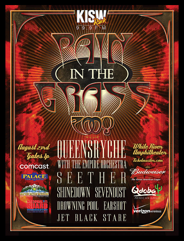 A concert series poster designs for 99.9 KISW, a rock radio station in Seattle, WA. that were all were conceptually design from scratch.